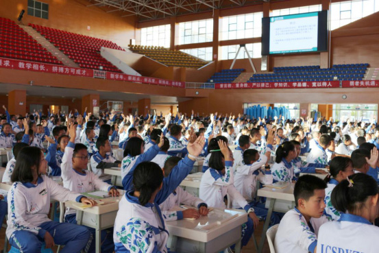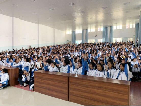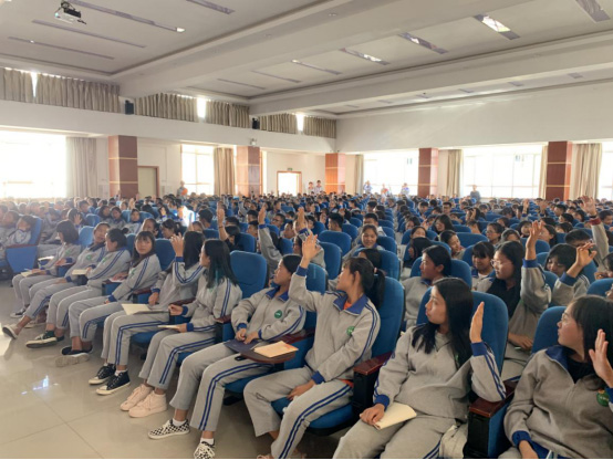 市一中、天有中學(xué)同學(xué)們舉手參與互動(dòng)