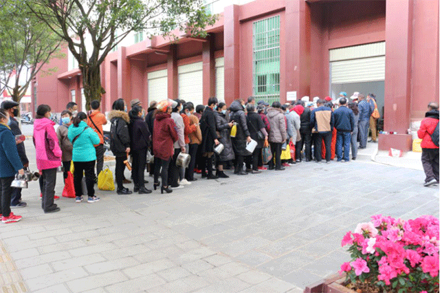 群眾排隊領(lǐng)取大鍋藥