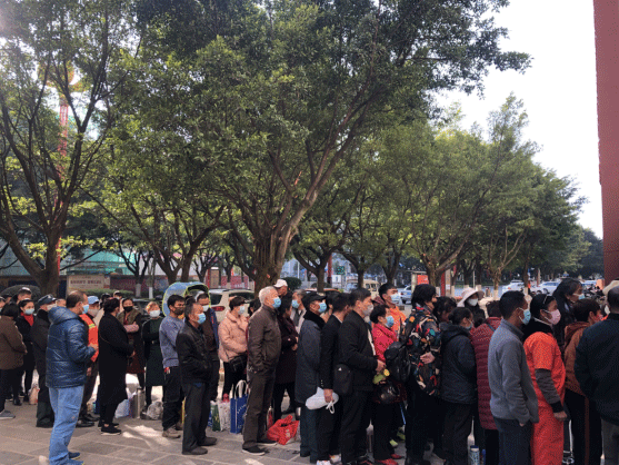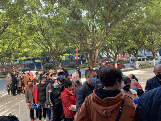 群眾在臨滄市中醫醫院大鍋藥免費發放點前排隊領取