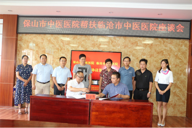 2019年6月26日,保山市中醫醫院幫扶臨滄市中醫醫院座談會暨幫扶合作簽約儀式在保山市中醫醫院舉行。臨滄市衛生健康委黨組書記、主任張世蘭、保山市衛生健康委副主任史常林、保山市衛生健康委中醫管理科科長王若璐、臨滄市衛生健康委規劃財務與信息建設科副科長楊琳、臨滄市中醫醫院院長唐貞力、保山市中醫醫院一、二級領導班子成員等出席了會議。