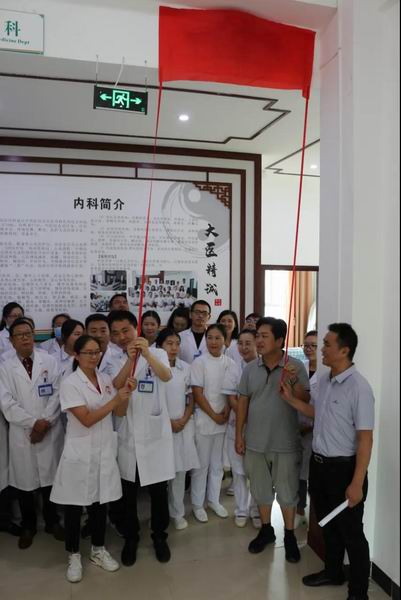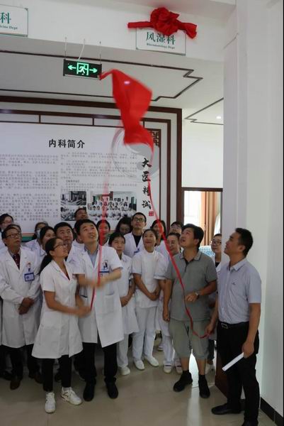 2020年7月21日臨滄市中醫醫院(佤醫醫院)風濕科正式掛牌成立,并在當天下午舉行揭牌儀式。參加揭牌儀式的有:院領導、各科室主任、護士長、風濕科全體醫護人員近40余人。醫院院長唐貞力、書記邱世春、內科主任葉冬梅、學科二級負責人郭志強主治醫師共同為風濕科揭牌。