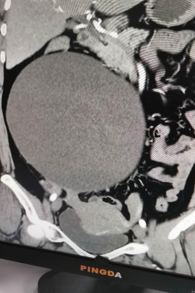 近半月腹部悶脹感加重,仰臥不能,伴頭暈、頭痛、四肢乏力,心悸胸悶、納差食少,當(dāng)?shù)乜h人民醫(yī)院檢查發(fā)現(xiàn)盆腹腔有一巨大包塊性質(zhì)不詳,進(jìn)一步CT檢查示:右側(cè)腹腔巨大包塊影(20x18cm),診斷為:1、盆腹腔巨大包塊性質(zhì)待查;2、高血壓3級(jí)極高危組;3、高血壓性心臟病;4、混合型高脂血癥;5、子宮肌瘤等多病。因患者盆腹腔包塊較大,合并基礎(chǔ)疾病較多,建議到上級(jí)醫(yī)院行手術(shù)治療、明確性質(zhì),遂于2020年10月19日就診于我院并收住婦科。