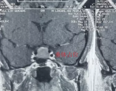 患者段女士,42歲。反復頭暈、眼花、心慌已經5月多了,5月前當地醫院頭顱CT未見明顯異常。1周前患者頭暈、眼花越發嚴重,輾轉多個醫院無果后,患者來到我院內科住院檢查,完善頭顱CT后,發現鞍區占位,考慮垂體腺瘤可能。